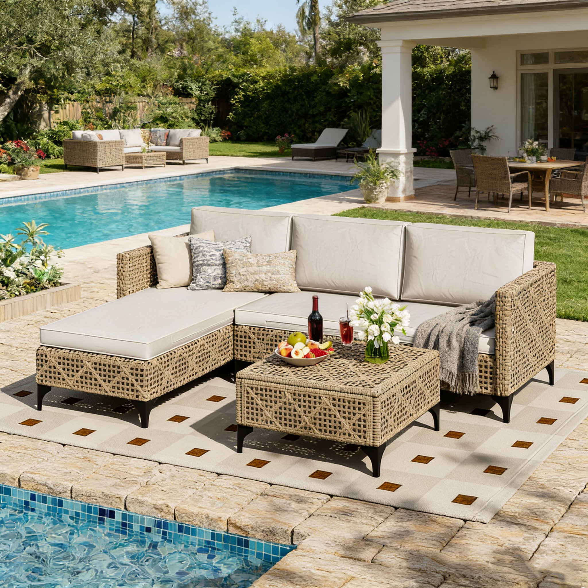 Upgrade your space with this stylish wicker patio furniture set, including a lounger sofa, loveseat, and tempered glass coffee table....