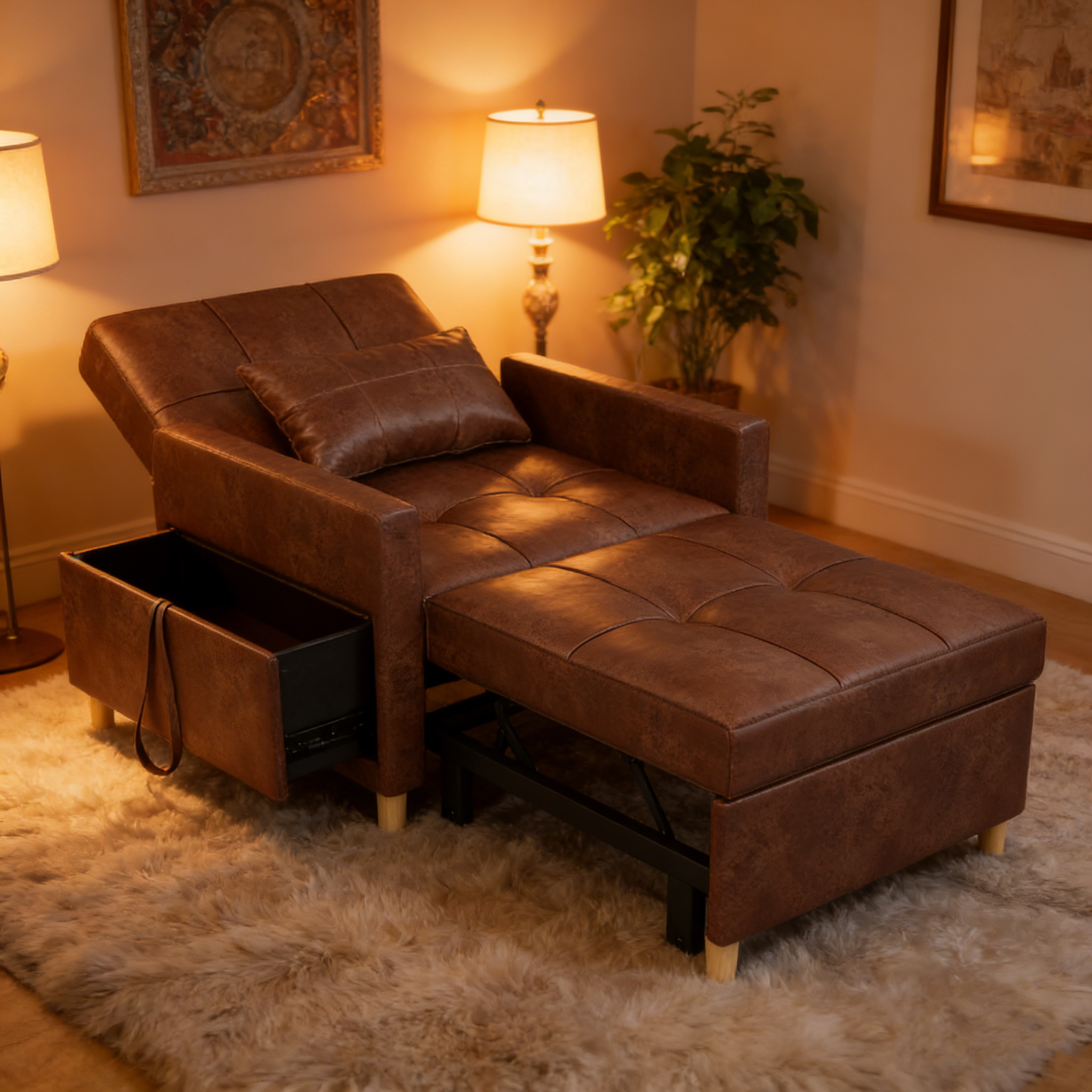 YODOLLA 3 in 1 Chair Bed Sleeper for Adults, Brown