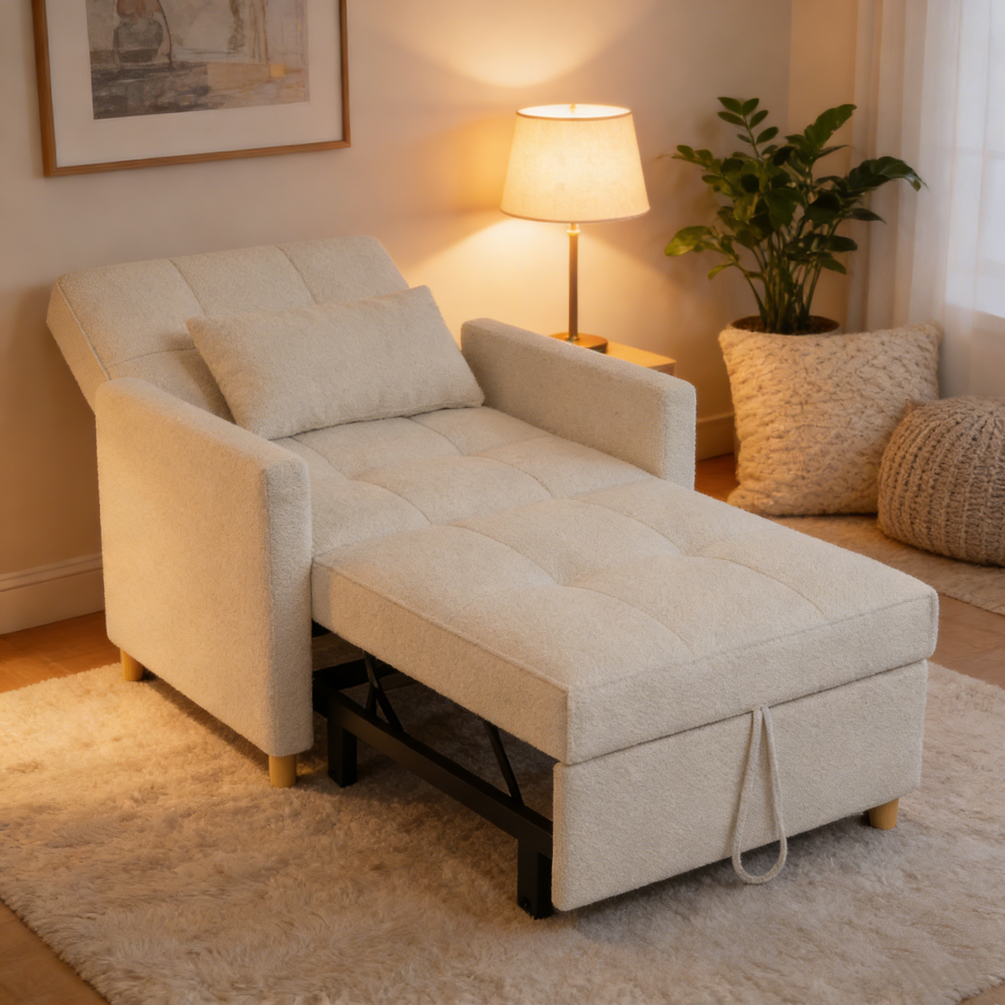 YODOLLA 3 in 1 Chair Bed Sleeper for Adults, Teddy White