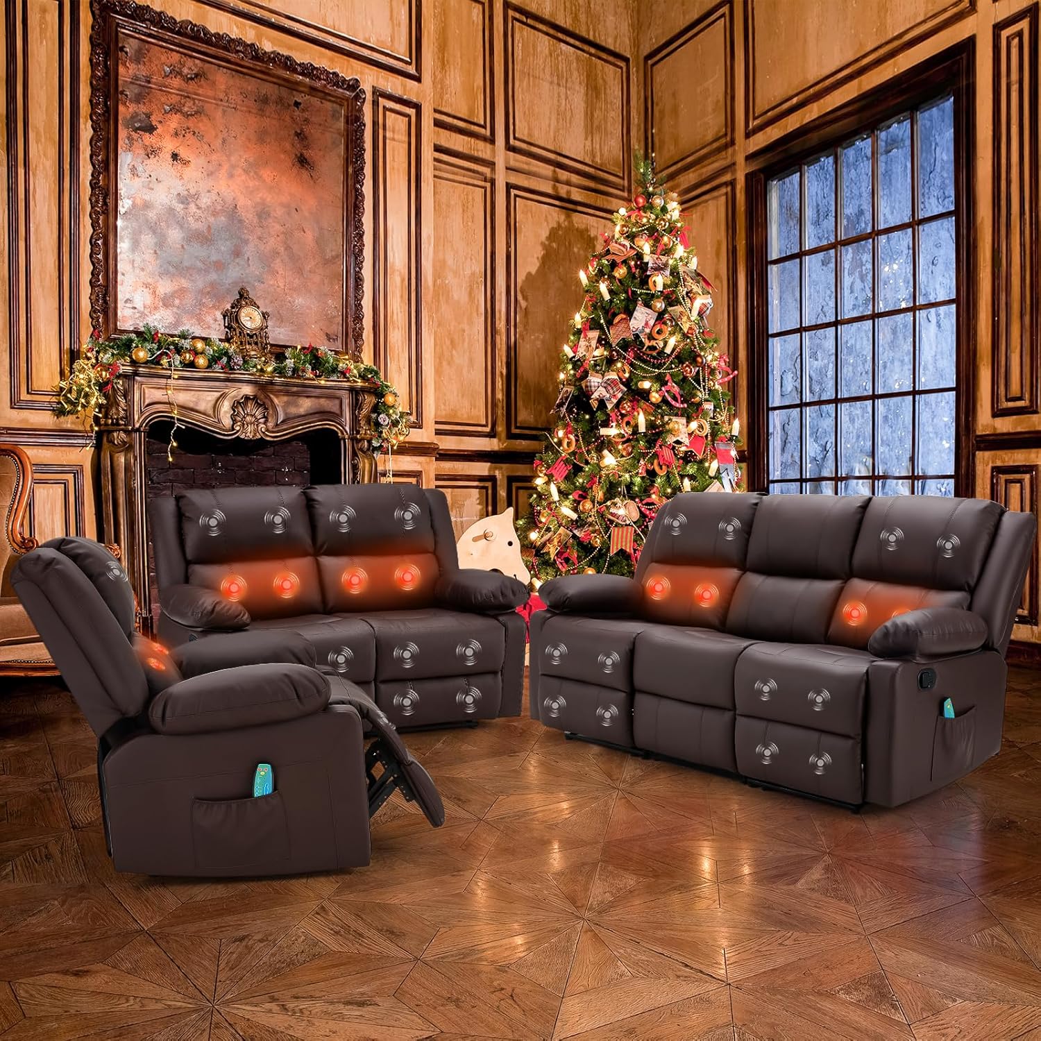 YODOLLA 3 PCS Leather Recliner Sofa Set