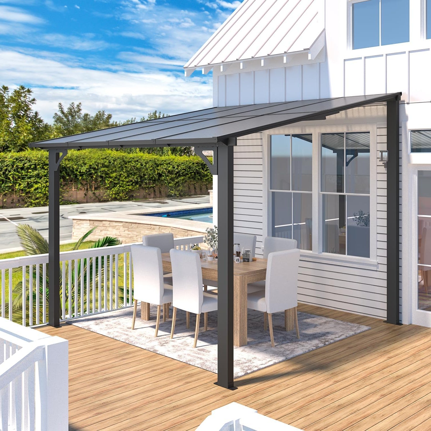 YODOLLA 10' x 8' Lean to Gazebo Pergola for Patio, Dark Grey