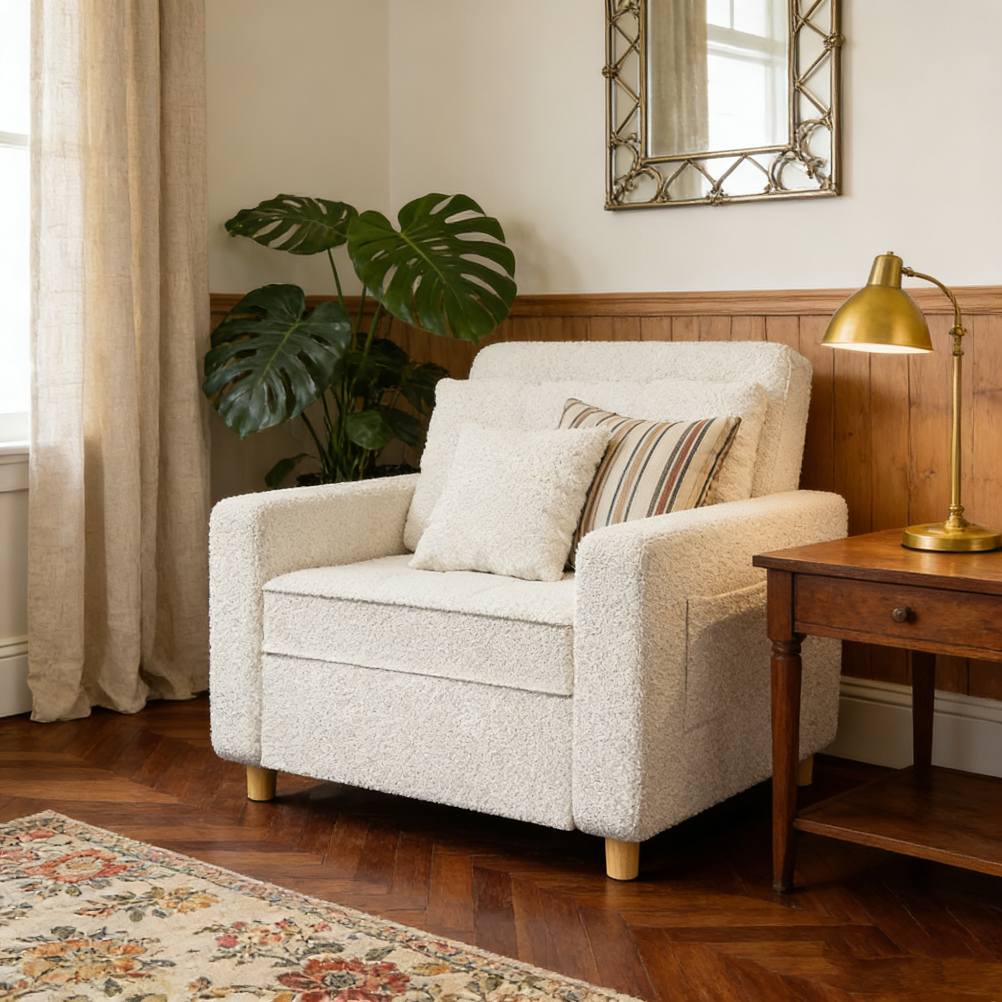 YODOLLA 36" Convertible Chair Bed, Teddy White