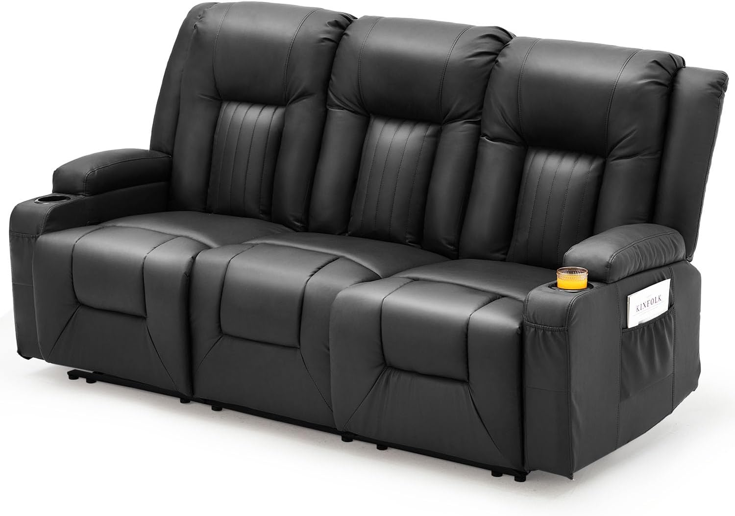YODOLLA 3-Seat Recliner Sofa, Black Faux Leather
