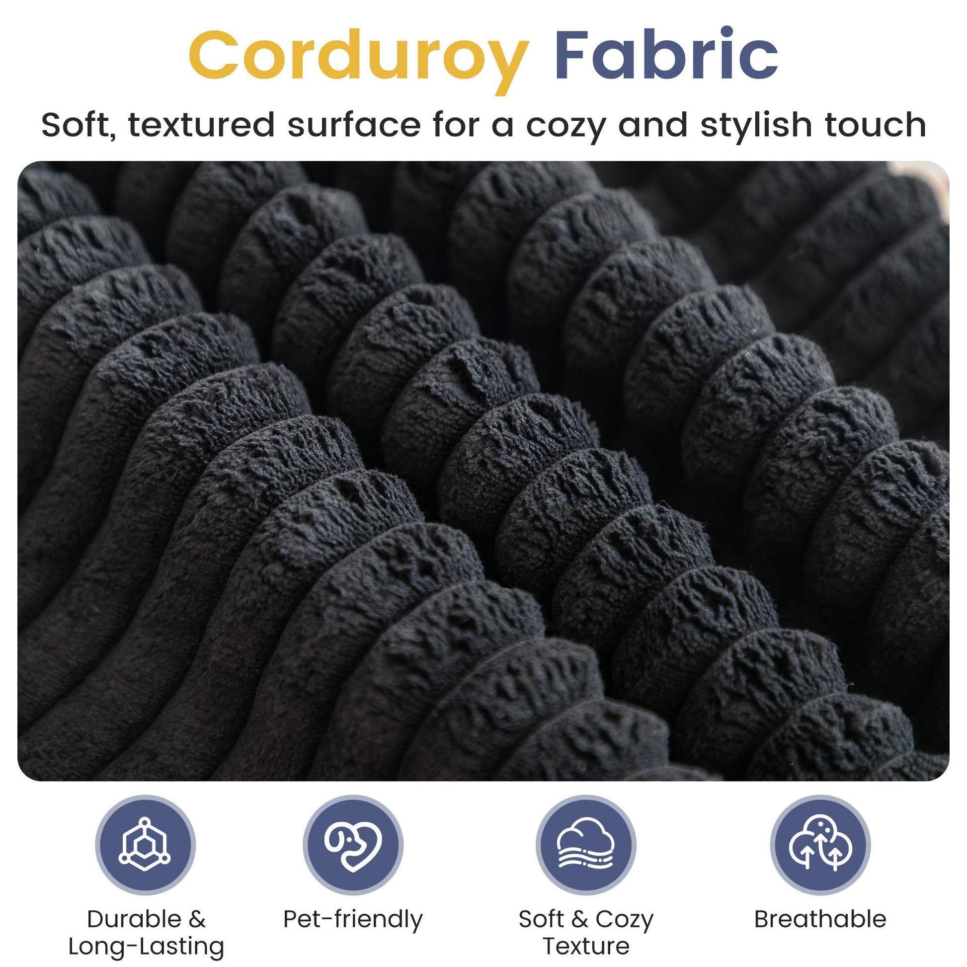 This modular sectional sofa features a no-assembly, boneless design that expands fully within 48–72 hours after unboxing. Upholstered in plush corduroy fabric, the couch offers a soft, cozy feel with layered cushions combining high-resilience foam and shredded foam for lasting comfort. Independent modules allow flexible layouts for apartments or large living rooms. Designed with non-slip seat cushions, supportive high backrests, and removable washable covers, this modern sectional sofa delivers convenience, comfort, and adaptable everyday seating.