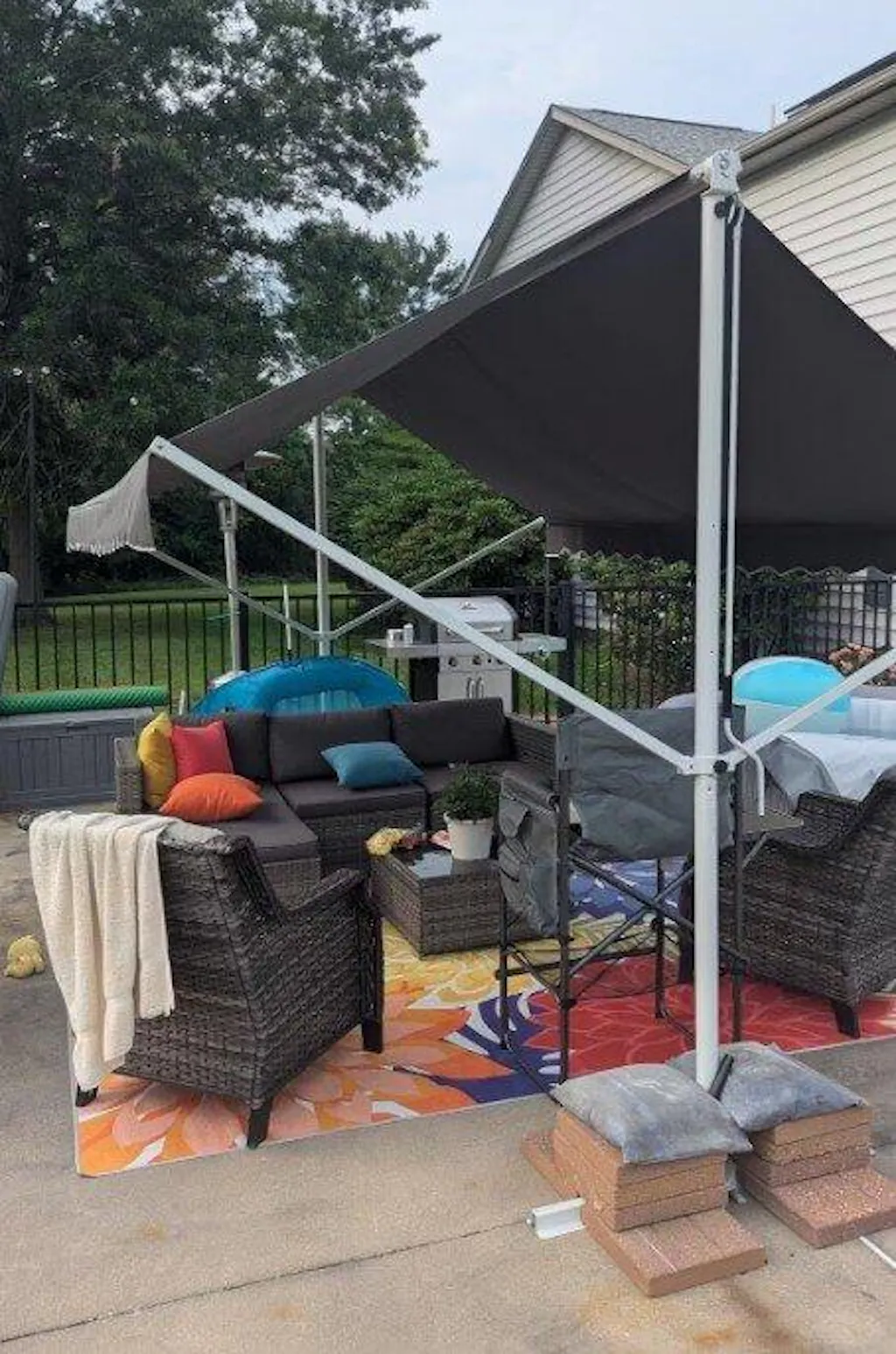 YODOLLA 13×10 ft dual‑side freestanding retractable awning (dark gray) — durable outdoor shade solution ideal for patios, decks, gardens, and backyard lounging.
