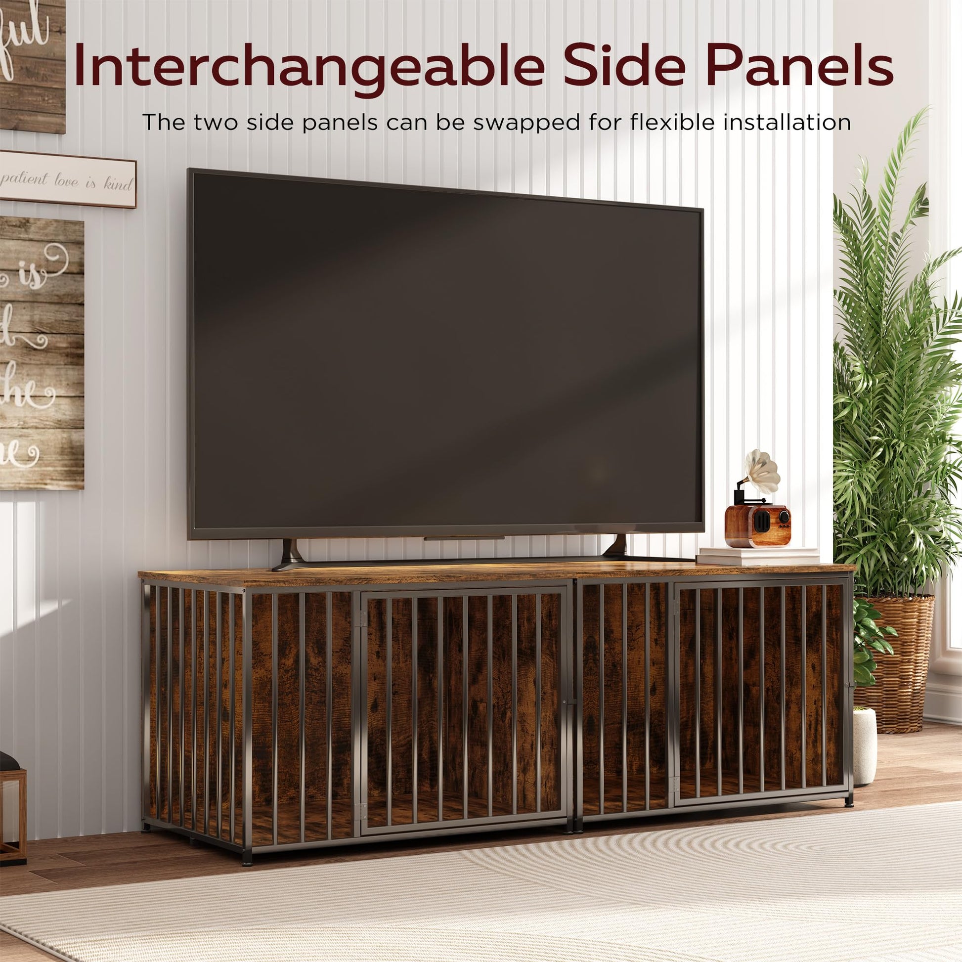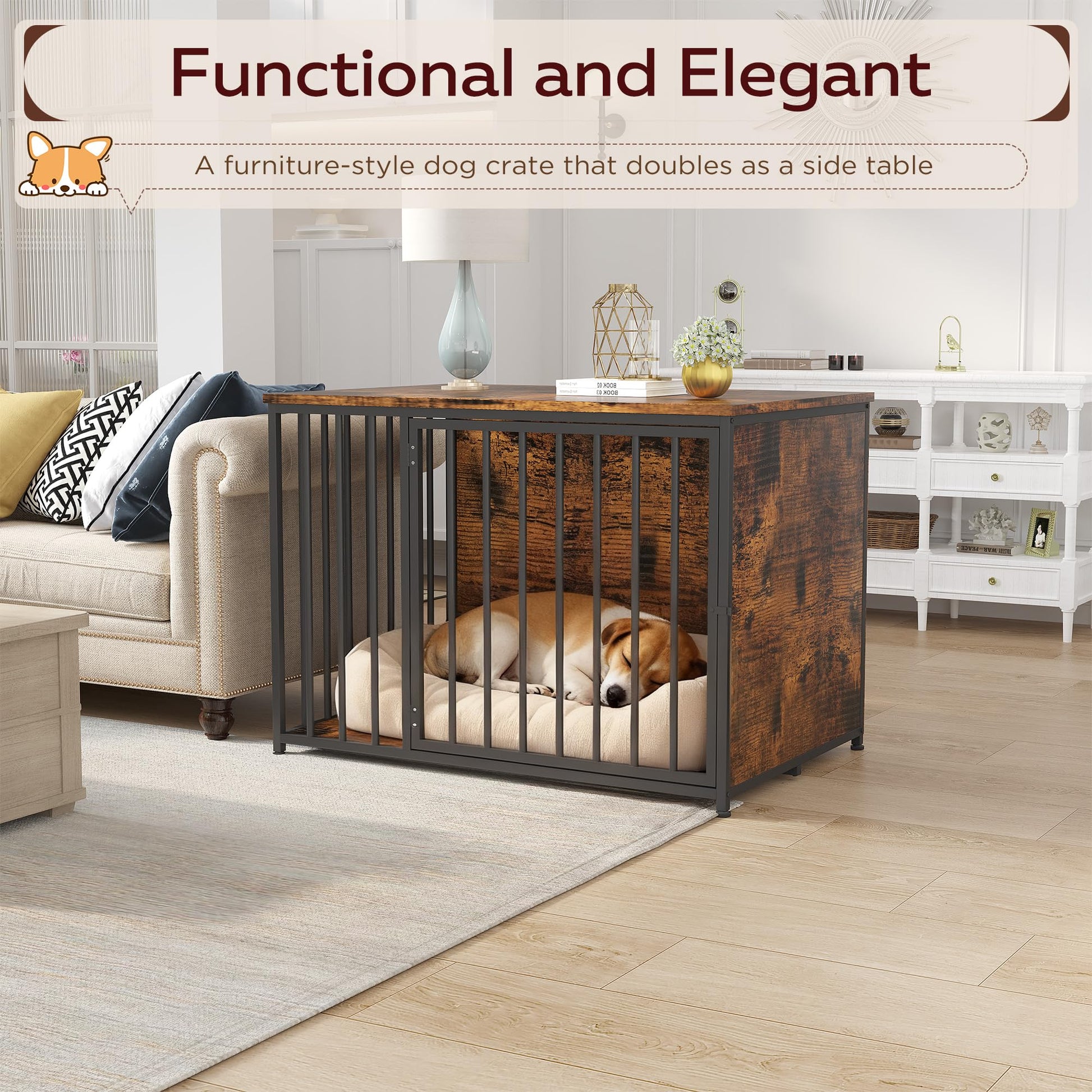 The YODOLLA 42-Inch Dog Crate Furniture is designed to provide both comfort for your pet and style for your home. Made from durable wood and reinforced steel, this escape-proof and chew-proof indoor kennel offers a safe and cozy space for medium to large dogs. Its spacious design ensures your pet can rest comfortably, while the flat top surface serves as a functional end table or decorative display area. Finished in a rustic brown tone, it blends seamlessly with modern or farmhouse interiors, making it a practical and elegant addition to any living space.