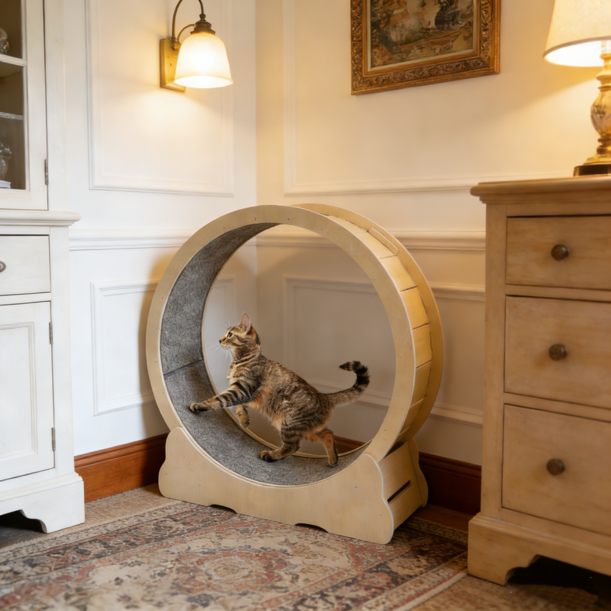 • Low-Noise: The wheels of the cat treadmill feature a noise-reducing design, ensuring smooth and silent operation, so your cat can exercise happily in a calm, noise-free environment without disrupting your home