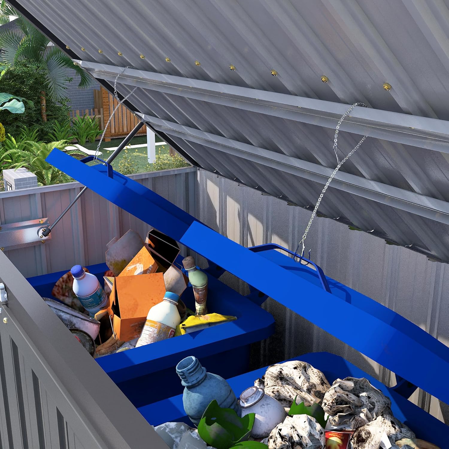Yes, our waterproof shed features fully sealed rust-resistant metal panels with reinforced seams to prevent leaks. The elevated base and sloped roof design ensure rainwater runoff, making it ideal for use as a protected garbage bin shed or outdoor equipment storage.