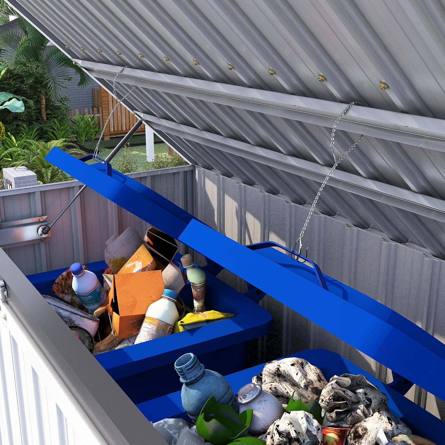 Absolutely. This unit is designed with upward-opening lid hooks that attach directly to garbage can lids for hands-free use. The hydraulic lift system allows for easy and safe access, making it a perfect trash can shed.