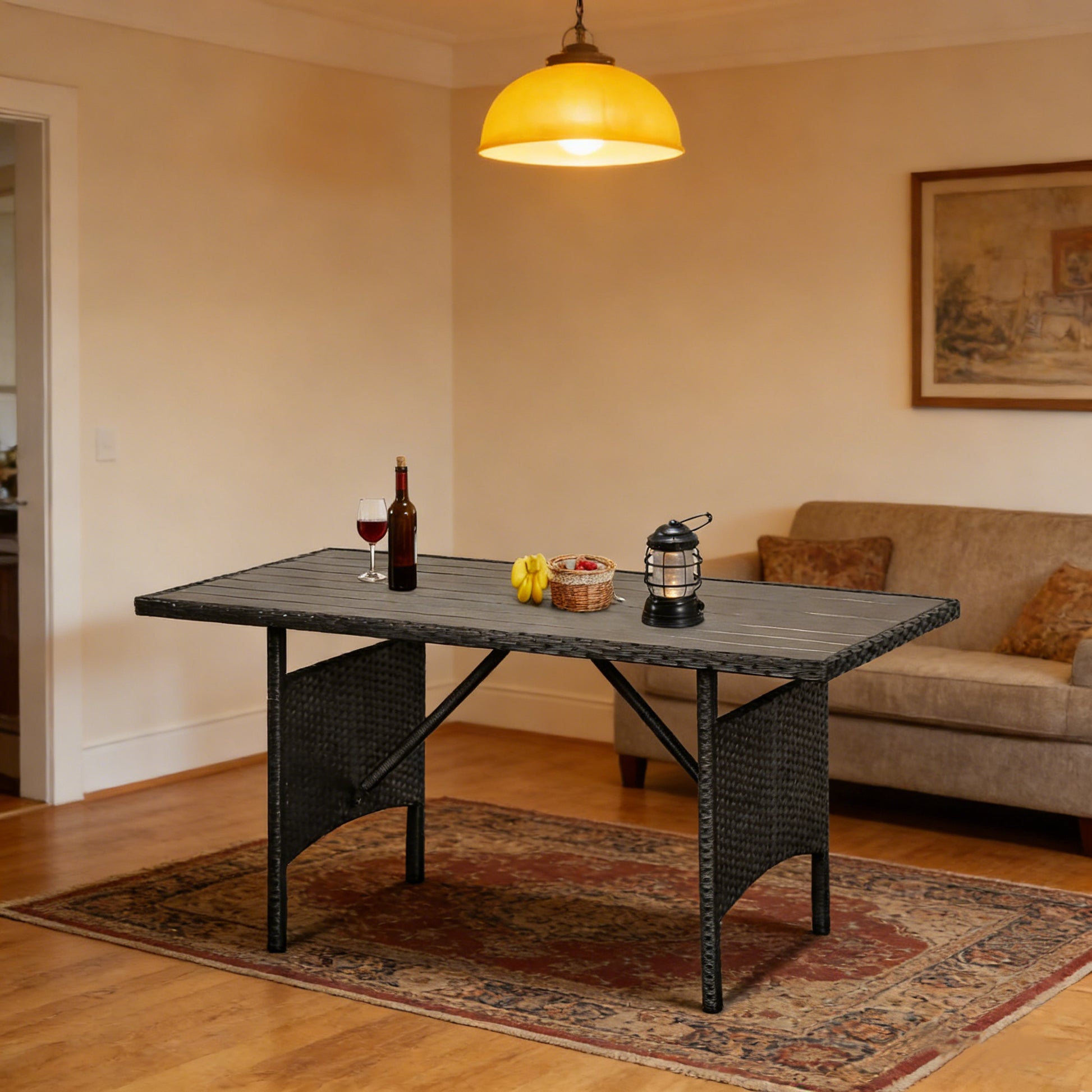 YODOLLA 54” Metal Frame Wicker Outdoor Dining Table, Black