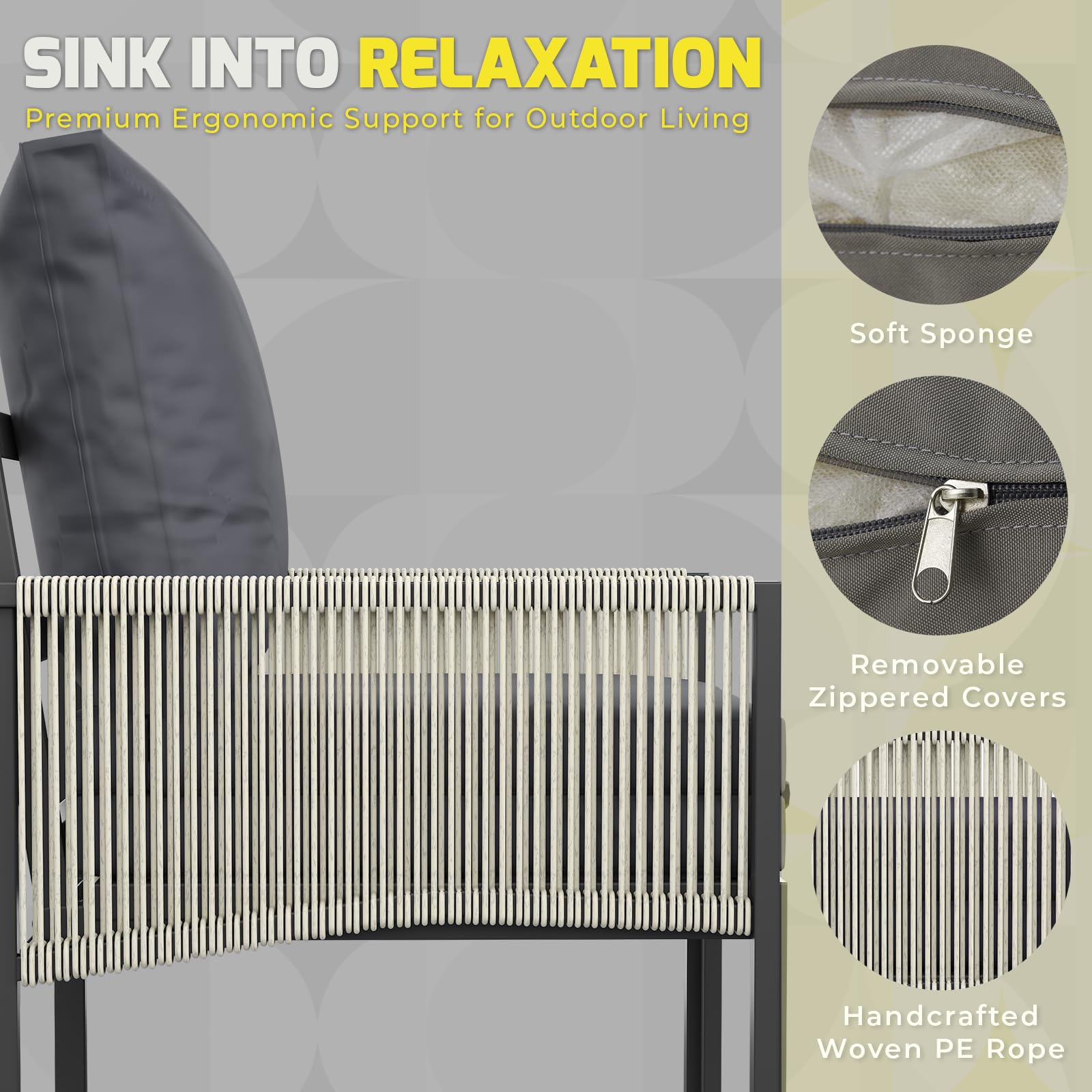 Elevate your outdoor living with this modular patio furniture set, featuring a 3-seater sofa, single sofas with retractable footrests, and a coffee table for versatile comfort. Built with a powder-coated aluminum frame and upgraded SDP fabric cushions, it offers durability, fade resistance, and easy maintenance. The flexible layout allows L-shape, U-shape, or linear setups. Designed for ergonomic comfort, this outdoor sectional sofa set is perfect for patios, gardens, balconies, or poolside relaxation.