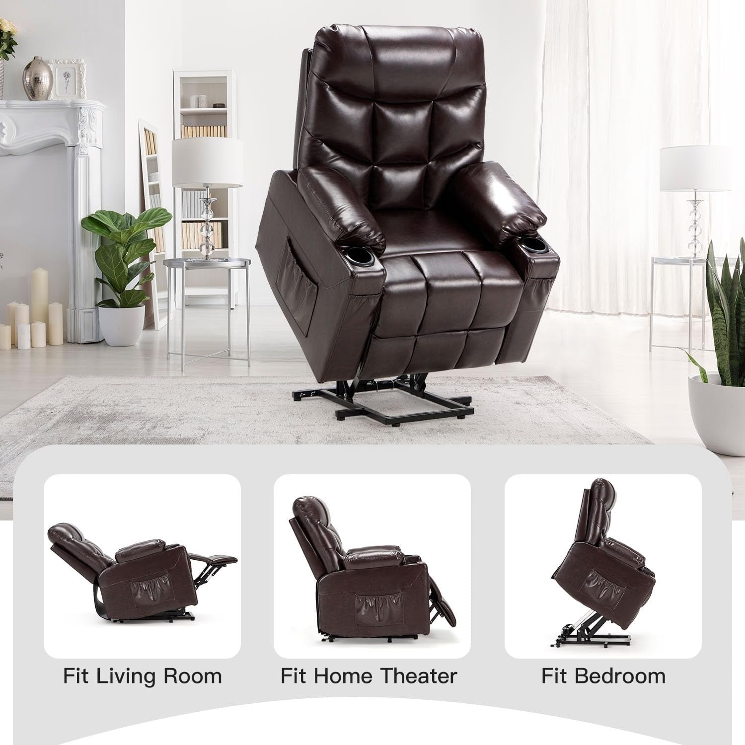 YODOLLA Massage Power Lift Recliner for Elderly, Faux Leather, Dark Brown