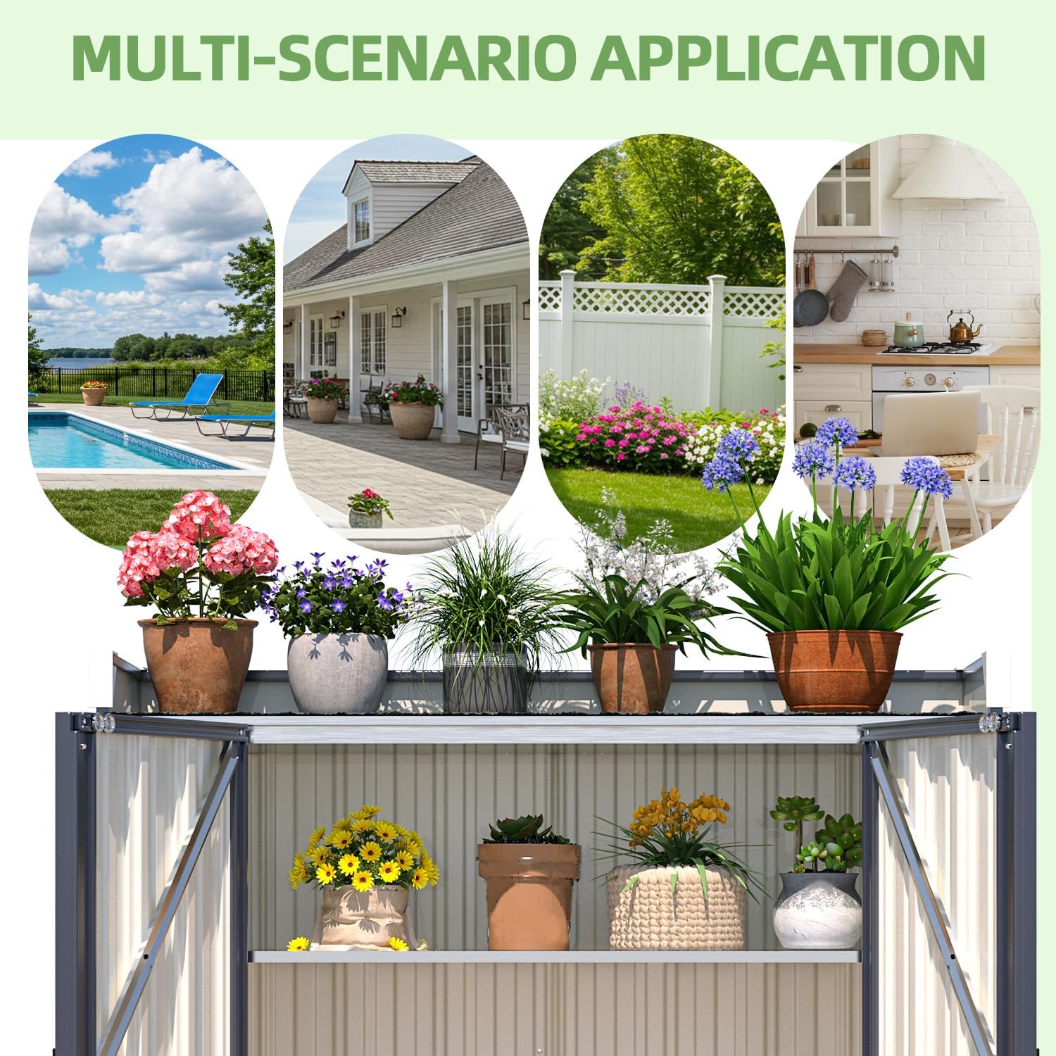 • 【Adjustable Shelves】: Innovative 5-position adjustable and flexible shelves design, free to adjust the space, suitable for gardening tools and small pots, can hold up to 10 12-inch diameter pots or 2 5-gallon buckets to meet diversified needs