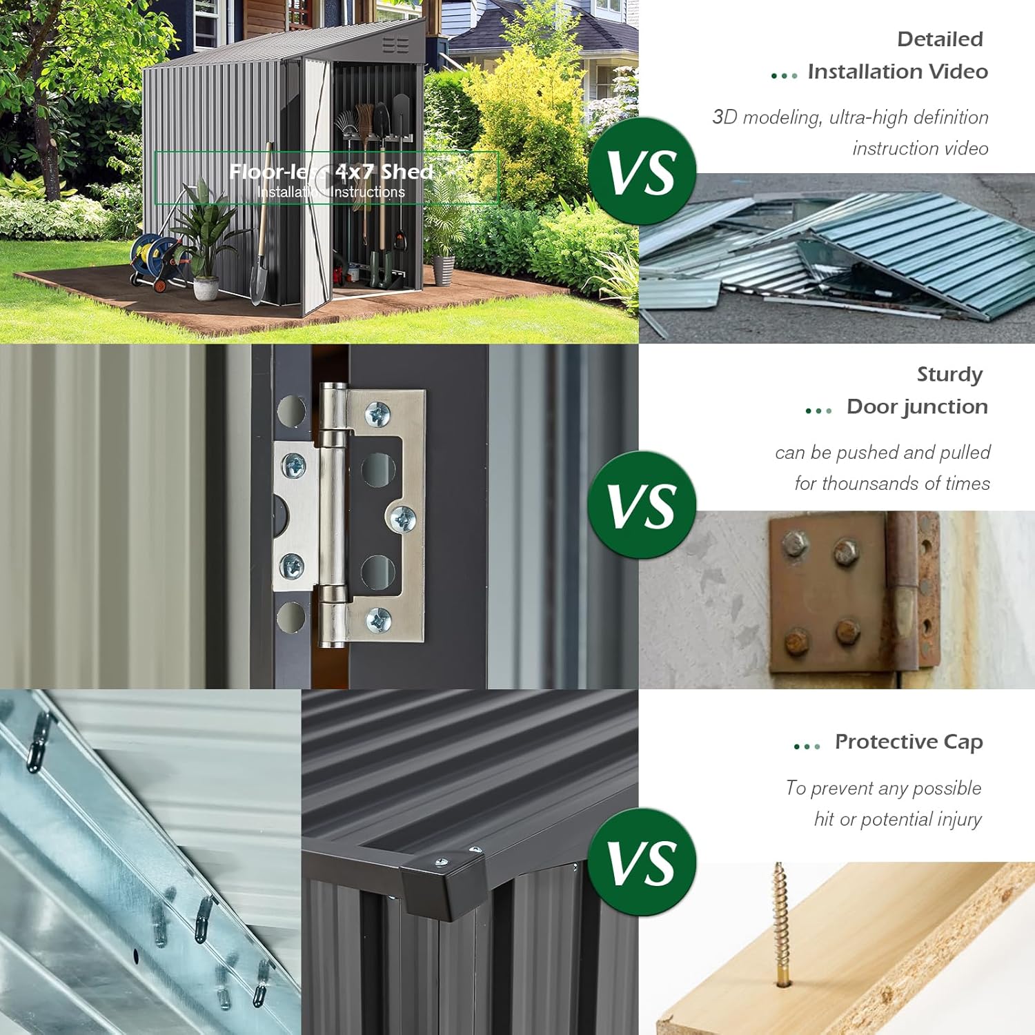 The YODOLLA 6'x8' Metal Wall Side Lean-to Storage Shed stands out due to its high-quality materials, durable galvanized coating, and superior wind resistance of up to 70 mph. Unlike cheaper alternatives, it offers greater stability and protection for your outdoor items. Whether you need a tool shed or a small outdoor shed, this shed provides exceptional value and longevity.