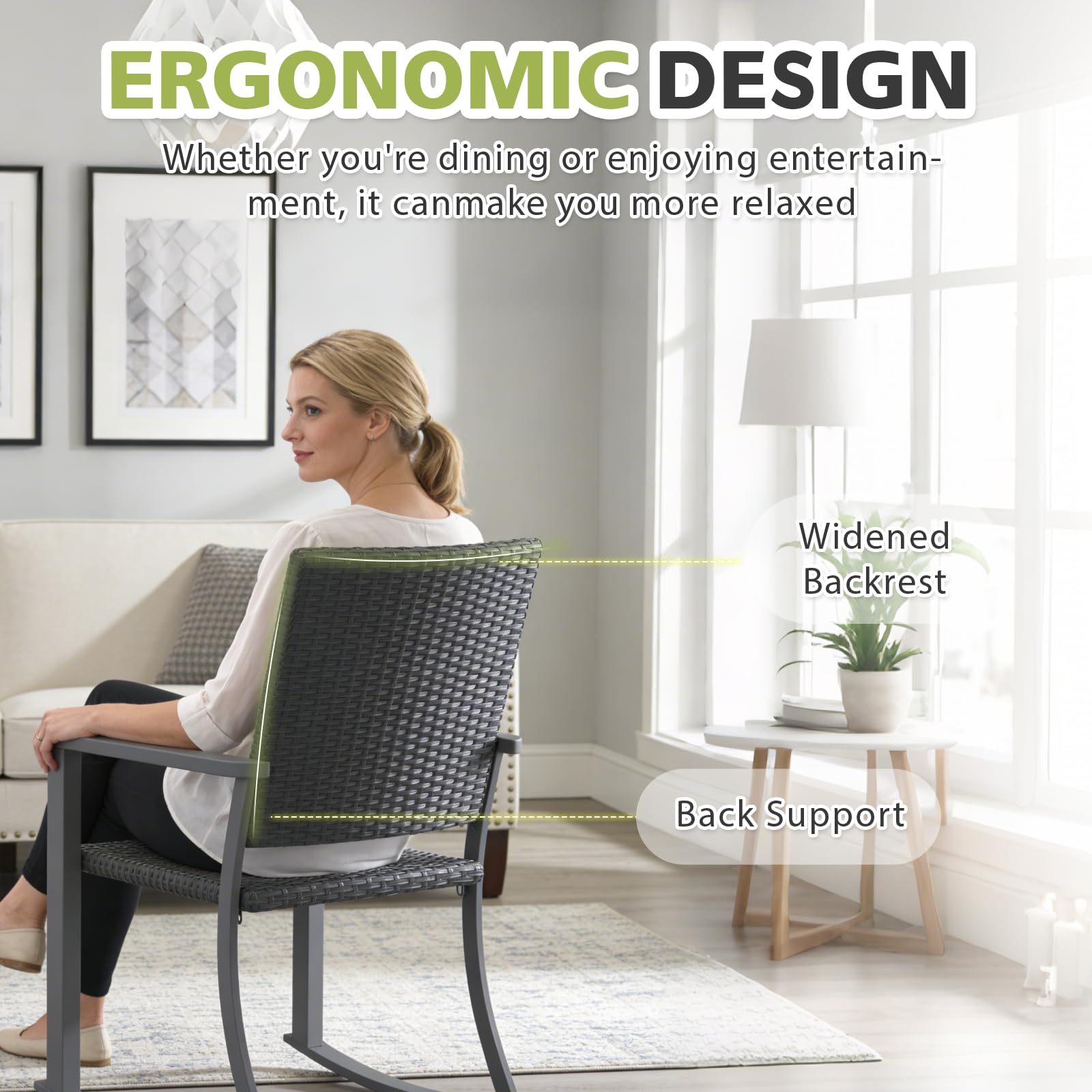 【COMFORT-BUILT SUPPORT】Each outdoor chair supports up to 220 lbs, featuring an ergonomic curved back, a soft woven seat, and integrated armrests designed to provide just the right amount of support for you and your guests—so you can relax and unwind in total comfort.