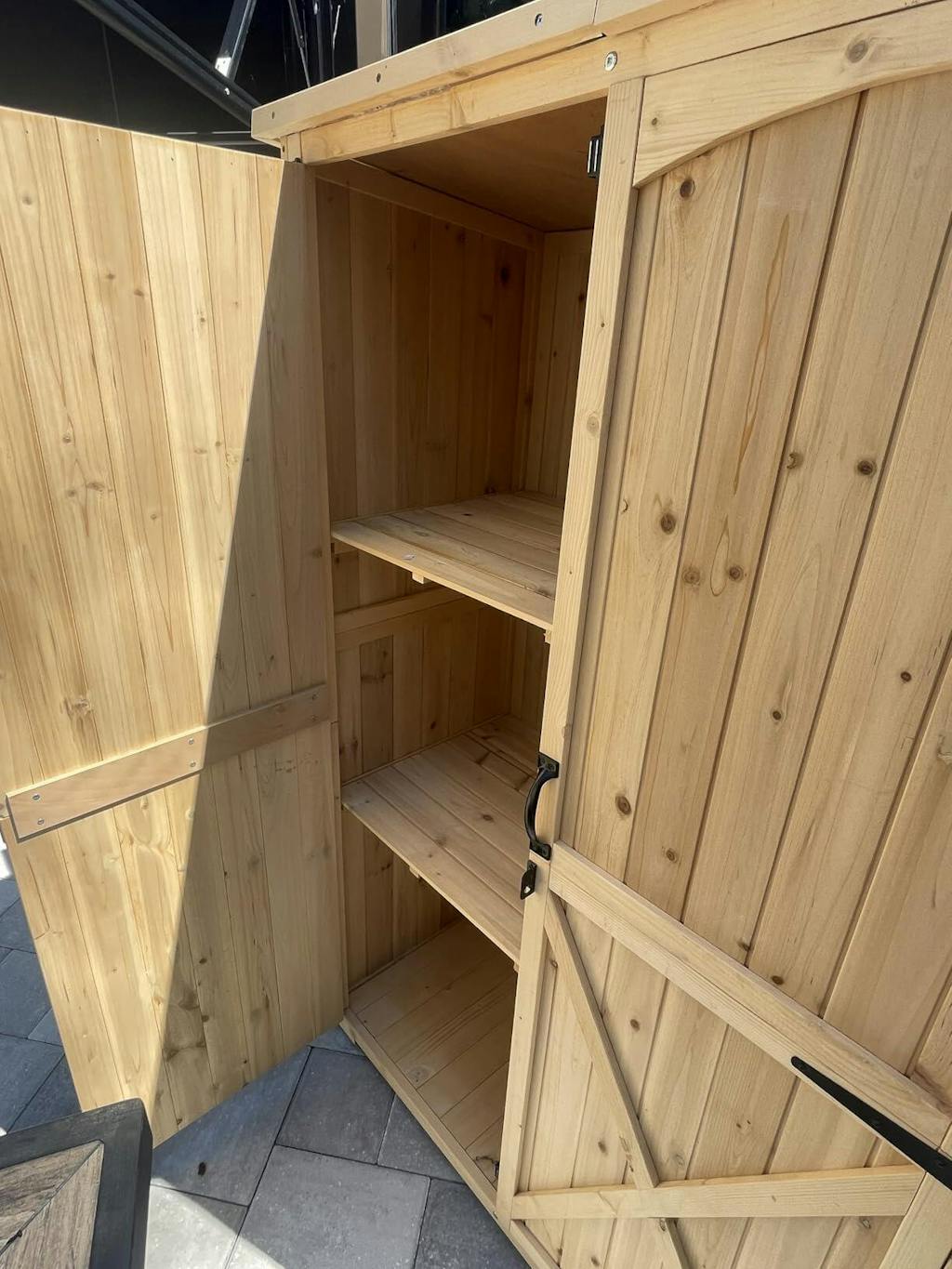A: Definitely. With its natural wood finish and compact footprint, the shed works great indoors or outdoors—whether in a garage, basement, porch, or garden.