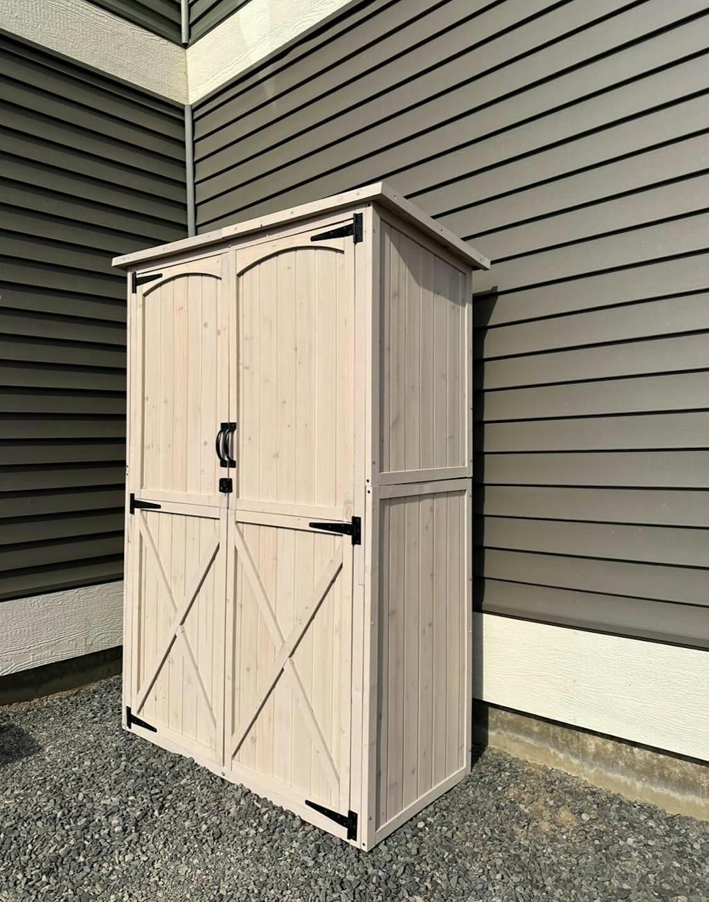 A: Its combination of waterproofing, versatile shelving, lockable security, and indoor/outdoor functionality make it a standout among horizontal sheds. Whether you're organizing your tools or enhancing your patio space, it’s a stylish and reliable solution.