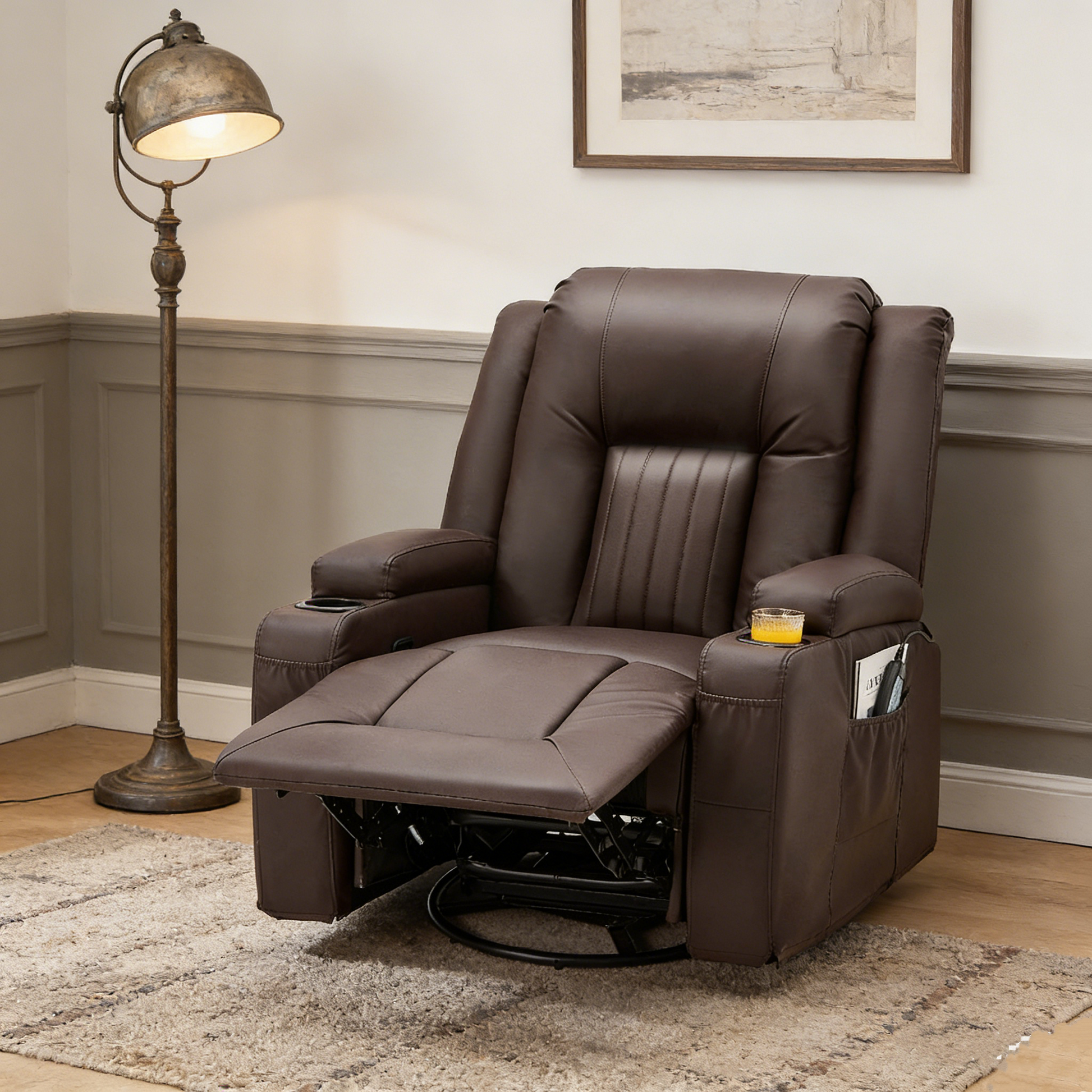 YODOLLA Recliner Chair with Heat&Massage, PU Leather Brown
