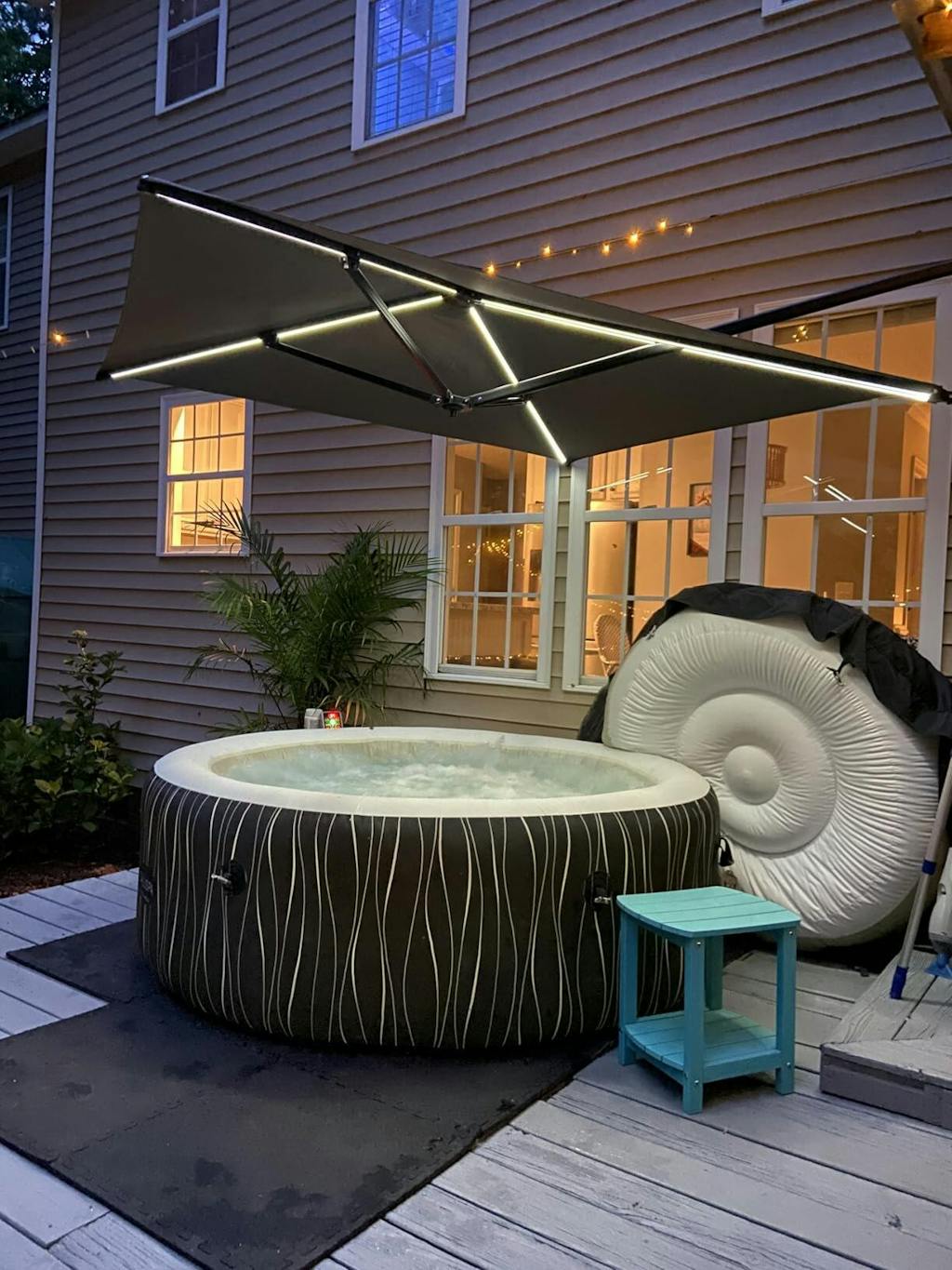 Love this wall Mount umbrella! The installation was fast and simple, sturdy bolts assure it’s definitely not going anywhere! The open/close assembly is easy to use, and the solar light feature looks absolutely gorgeous at night! Very pleased with this!